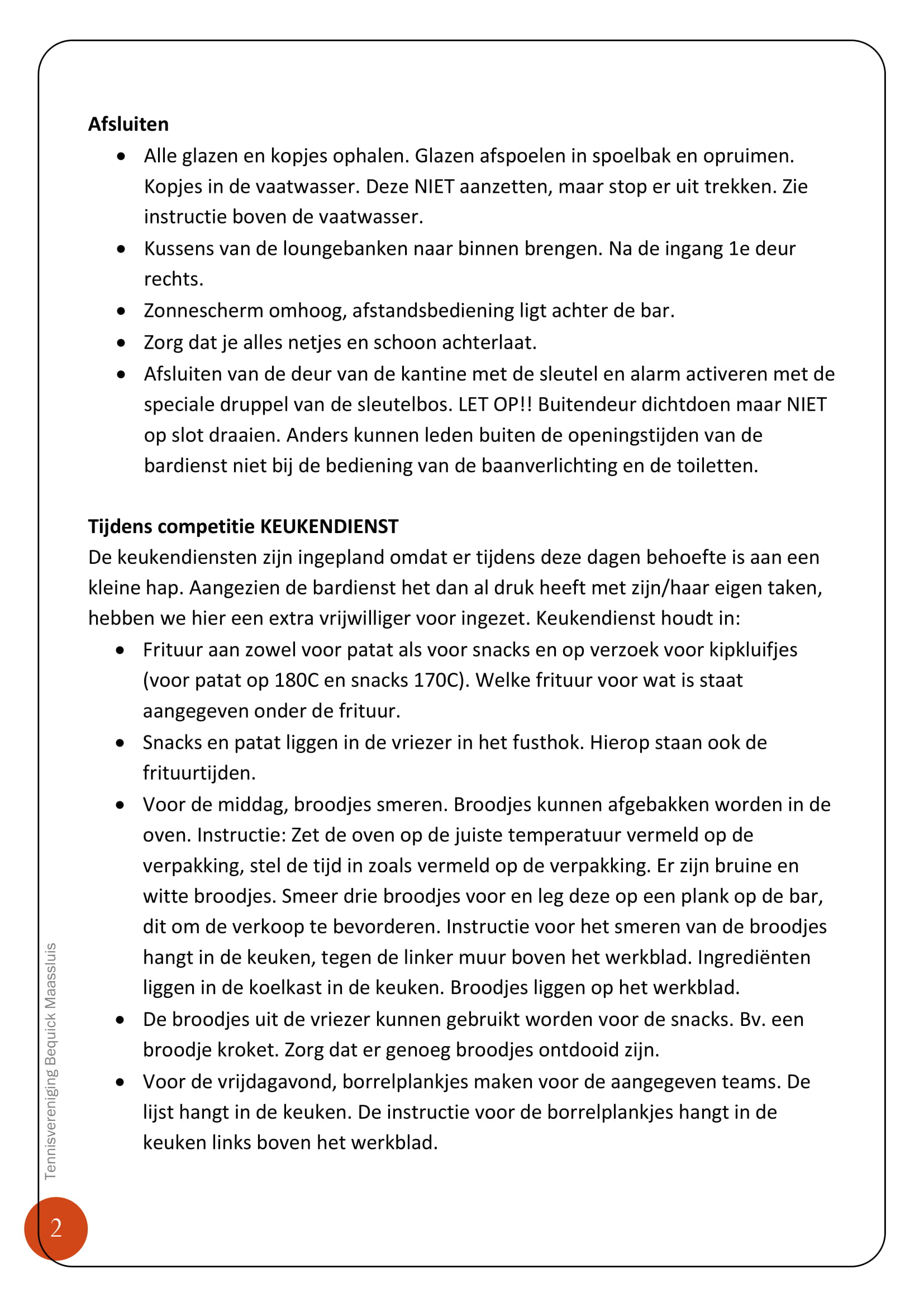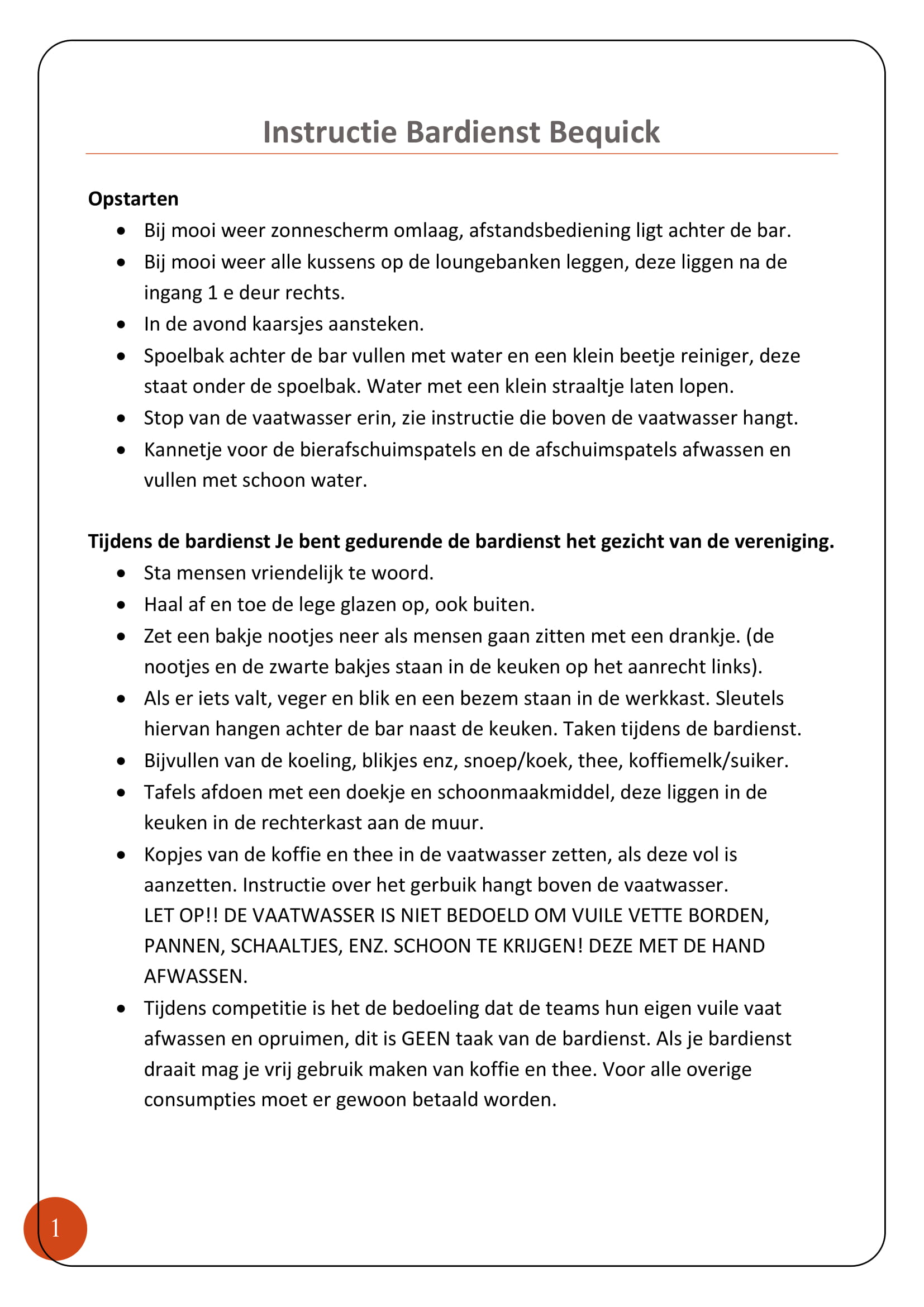 Als het tijdens jouw bardienst rustig is dan kun je in de map werkzaamheden in de kantine terugvinden wat je kunt doen. In deze map vind je een uitgebreide beschrijving van werkzaamheden. Hierin staat ook hoe de apparatuur werkt en waar je de benodigde sleutels kunt vinden.