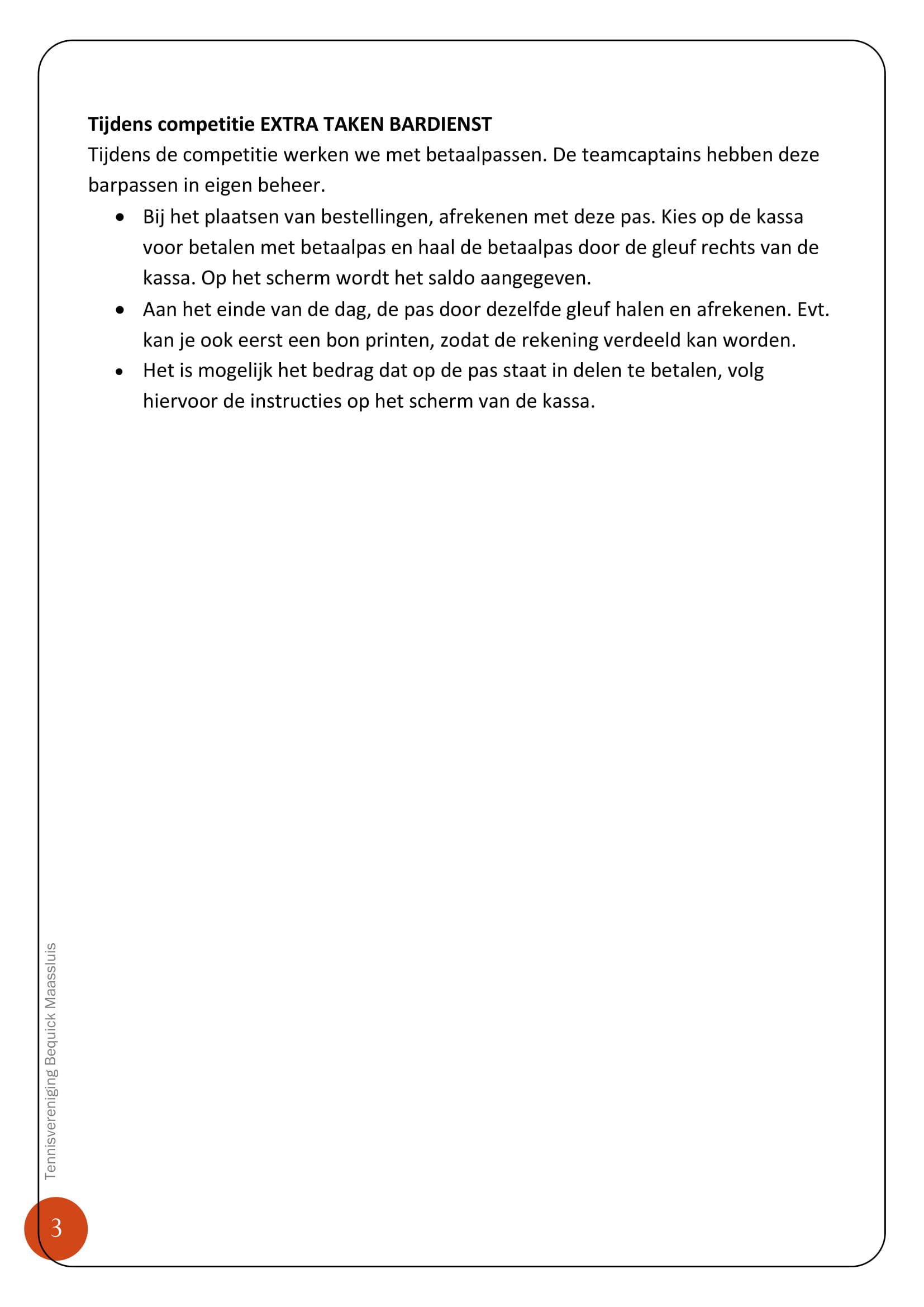 Mocht je ondanks deze mogelijkheden (ruilen of vervanging zoeken) niet op komen dagen voor je bardienst, zijn wij genoodzaakt €50,= per niet vervulde bardienst te berekenen. Hierop zal dit seizoen consequent worden toegezien. Via het nieuwe pas-systeem weten wij wie er voor de bardienst ingepland staat en of je wel of niet geweest bent.